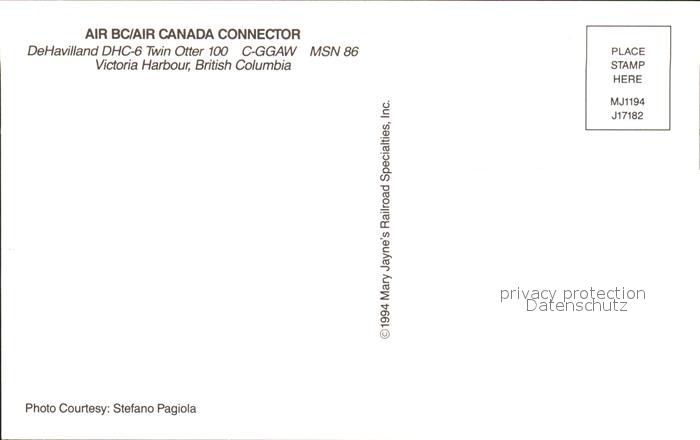 Flugzeuge Zivil Air BC/Air Canada Connector DeHavilland DHC-6 Twin Otter 100 C-GGAW MSN 86 postalisch nicht gelaufen Erhaltung siehe scans