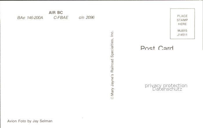 Flugzeuge Zivil Air BC BAe 146-200A C-FBAE c/n 2096 postalisch nicht gelaufen Erhaltung siehe scans