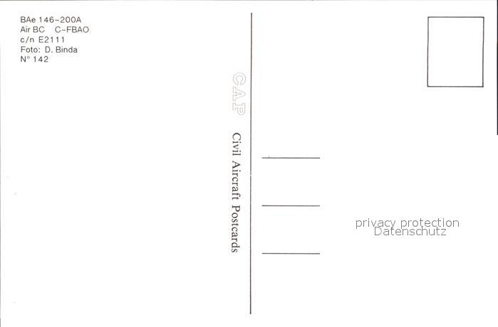 Flugzeuge Zivil Air BC BAe 146-200A C-FBAO c/n E2111 postalisch nicht gelaufen Erhaltung siehe scans