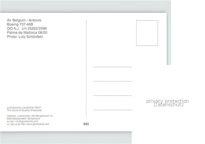 Flugzeuge Zivil Air Belgium Airtours Boeing 737-46B OO-ILJ c/n 25262/2088 postalisch nicht gelaufen Erhaltung siehe scans