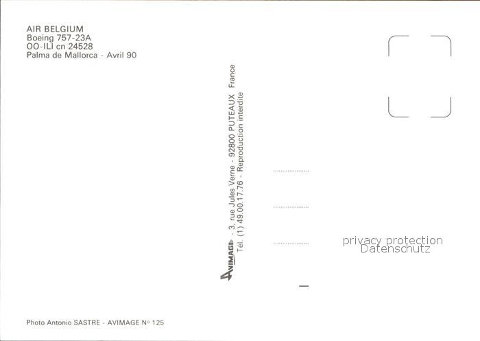Flugzeuge Zivil Air Belgium Boeing 757-23A OO-ILI cn 24528 postalisch nicht gelaufen Erhaltung siehe scans
