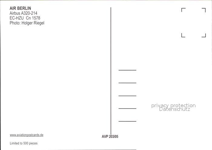 Flugzeuge Zivil Air Berlin A320-214 EC-HZU Cn 1578 postalisch nicht gelaufen Erhaltung siehe scans