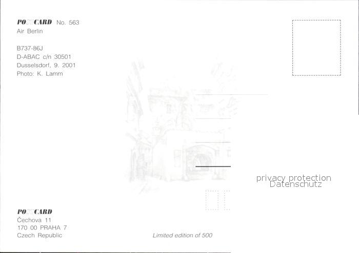 Flugzeuge Zivil Air Berlin B737-86J D-ABAC c/n 30501 postalisch nicht gelaufen Erhaltung siehe scans