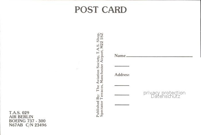 Flugzeuge Zivil Air Berlin Boeing 737-300 N67AB C/N 23496 postalisch nicht gelaufen Erhaltung siehe scans