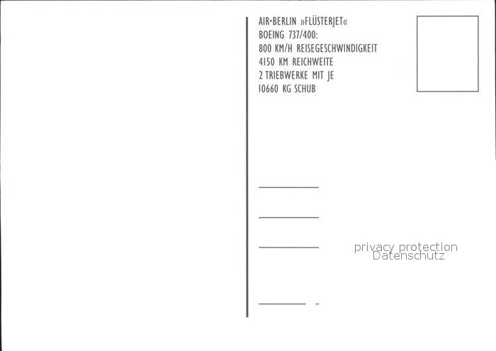 Flugzeuge Zivil Air-Berlin Boeing 737-400 postalisch nicht gelaufen Erhaltung siehe scans