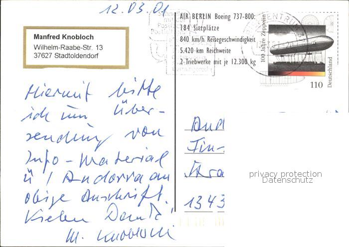 alte Postkarte Flugzeuge Zivil Air-Berlin Boeing 737-800 postalisch gelaufen