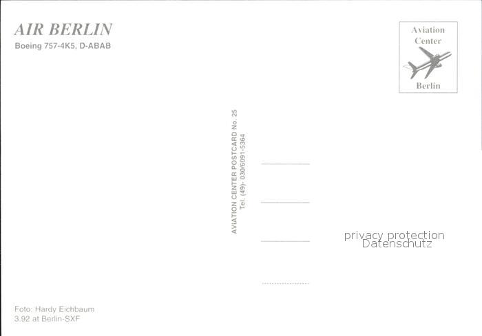 Flugzeuge Zivil Air Berlin Boeing 757-4K5 D-ABAB postalisch nicht gelaufen Erhaltung siehe scans