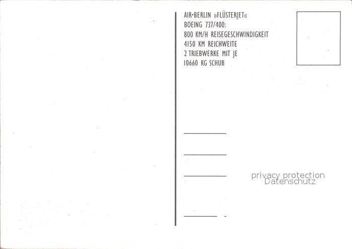 Flugzeuge Zivil Air-Berlin Fluesterjet Boeing 737/400 postalisch nicht gelaufen Erhaltung siehe scans