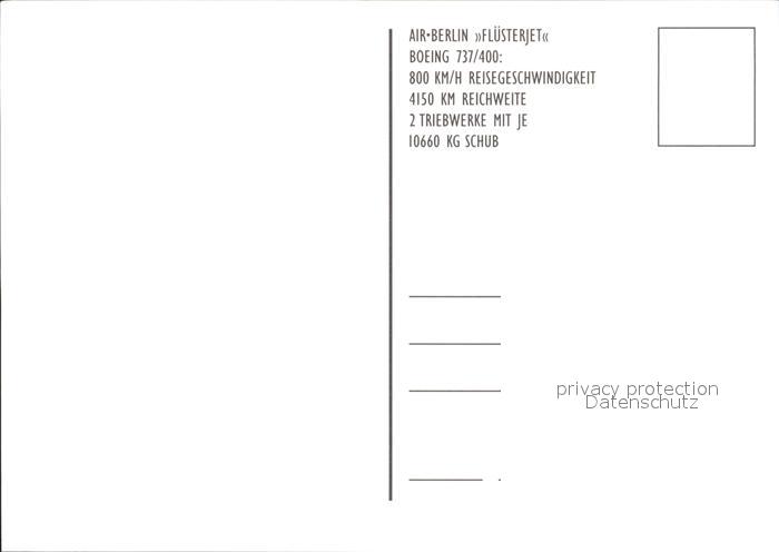 Flugzeuge Zivil Air Berlin Fluesterjet Boeing 737-400 postalisch nicht gelaufen Erhaltung siehe scans