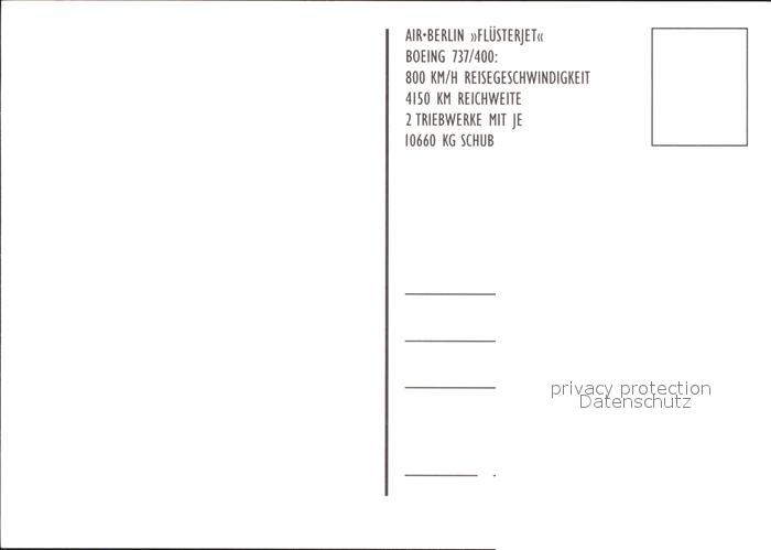 Flugzeuge Zivil Air-Berlin Fluesterjet Boeing 737/400 postalisch nicht gelaufen Erhaltung siehe scans