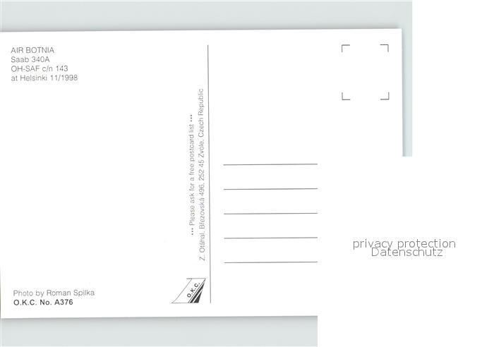 Flugzeuge Zivil Air Botnia Saab 340A OH-SAF c/n 143 postalisch nicht gelaufen Erhaltung siehe scans