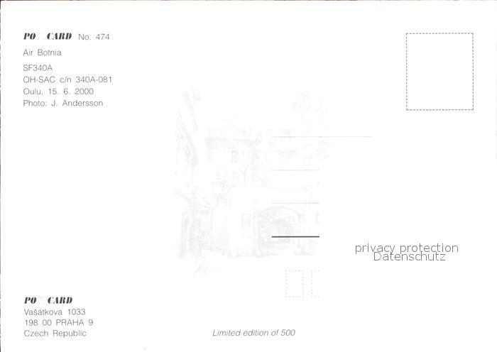Flugzeuge Zivil Air Botnia SF340A OH-SAC c/n 340A-081 postalisch nicht gelaufen Erhaltung siehe scans