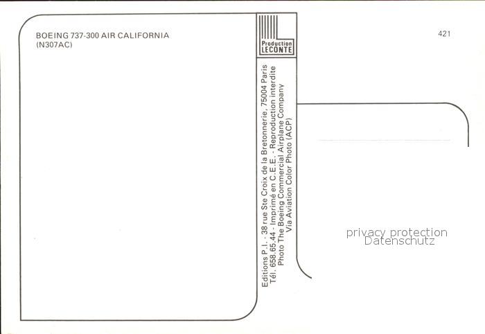 Flugzeuge Zivil Air California Boeing 737-300 N307AC postalisch nicht gelaufen Erhaltung siehe scans