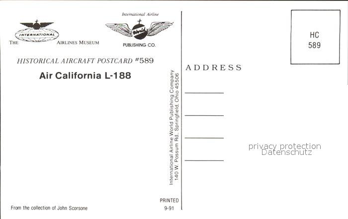 Flugzeuge Zivil Air California L-188 postalisch nicht gelaufen Erhaltung siehe scans