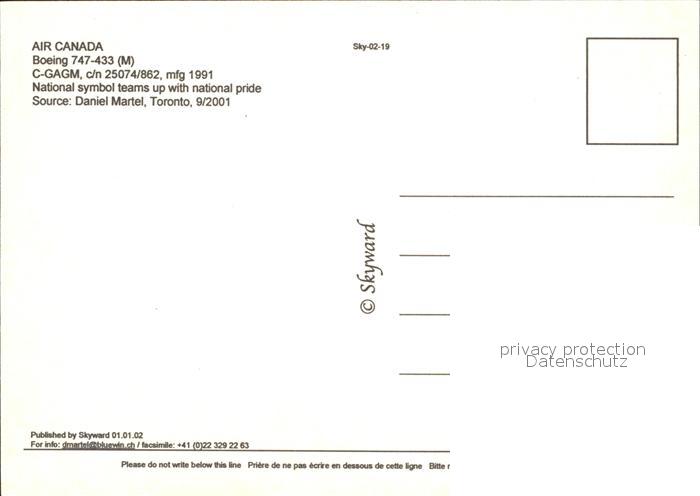 Flugzeuge Zivil Air Canada Boeing 747-433 C-GAGM c/n 25074/862 postalisch nicht gelaufen Erhaltung siehe scans