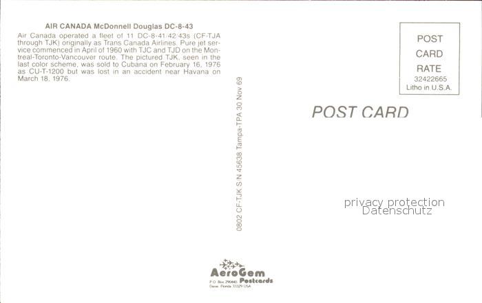 Flugzeuge Zivil Air Canada McDonnell Douglas DC-8-43 CF-TJK s/n 45638 postalisch nicht gelaufen