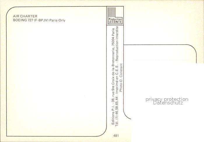 Flugzeuge zivil Air Charter Boeing 727 (F-BPJV) Paris Orly postalisch nicht gelaufen Erhaltung siehe scans