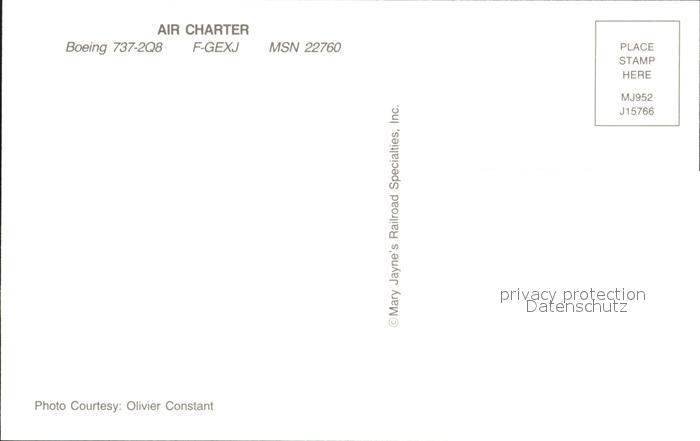 Flugzeuge Zivil Air Charter Boeing 737-2Q8 F-GEXJ MSN 22760 postalisch nicht gelaufen Erhaltung siehe scans
