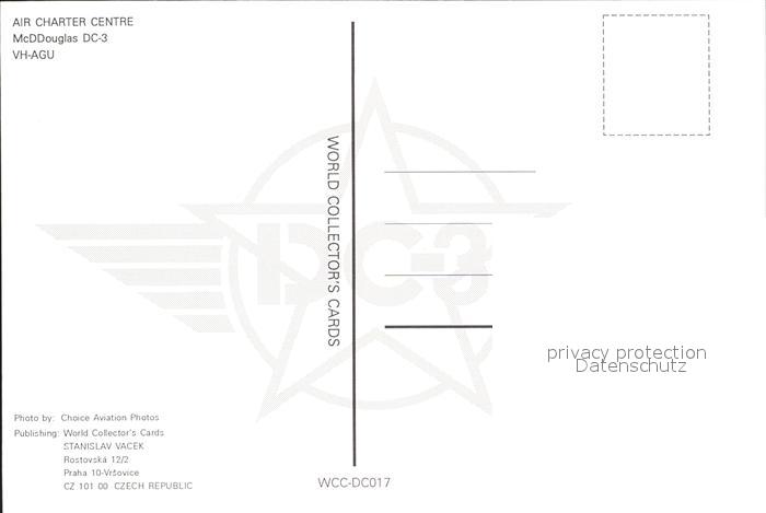 Flugzeuge zivil Air Charter Centre McDDouglas DC-3 VH-AGU postalisch nicht gelaufen Erhaltung siehe scans