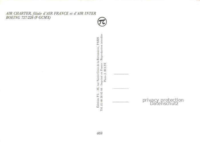 74040286 Flugzeuge Zivil Air Charter France Boeing 727-228 postalisch nicht gelaufen Erhaltung siehe scans [SanaeD93] KatCode: 22120000001300