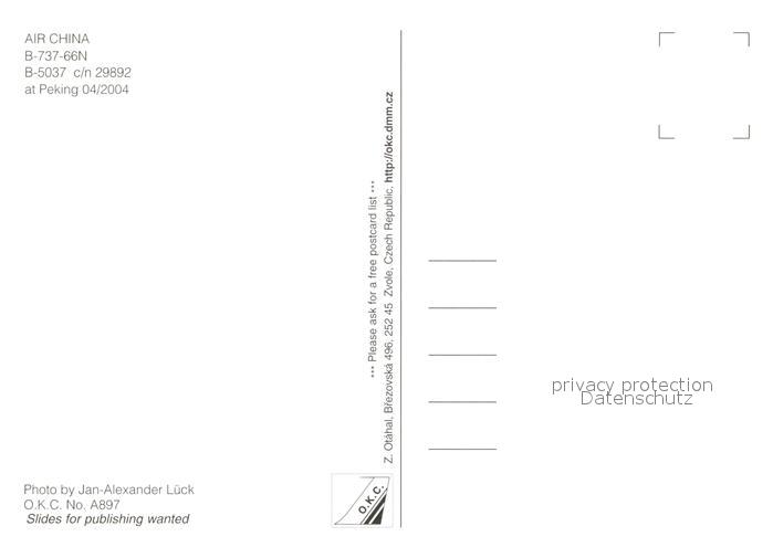 Flugzeuge Zivil Air China B-737-66N B-5037 c/n 29892 postalisch nicht gelaufen Erhaltung siehe scans [PaolaD17]