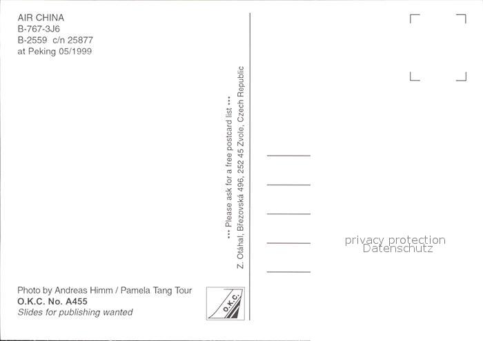 Flugzeuge Zivil Air China B-767-3J6 B-2559 c/n 25877 postalisch nicht gelaufen Erhaltung siehe scans