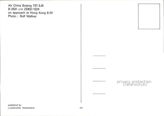 Flugzeuge Zivil Air China Boeing 737-3J6 B-2531 c/n 23302/1224 postalisch nicht gelaufen Erhaltung siehe scans