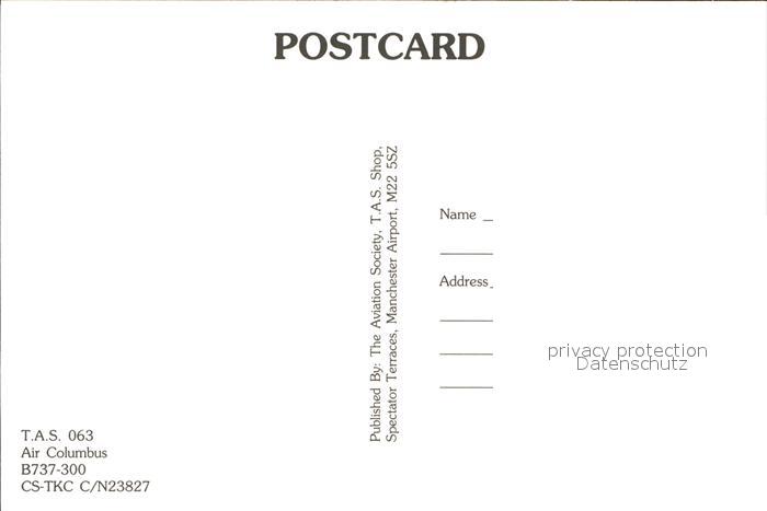 Flugzeuge Zivil Air Columbus B737-300 CS-TKC c/n 23827 postalisch nicht gelaufen Erhaltung siehe scans