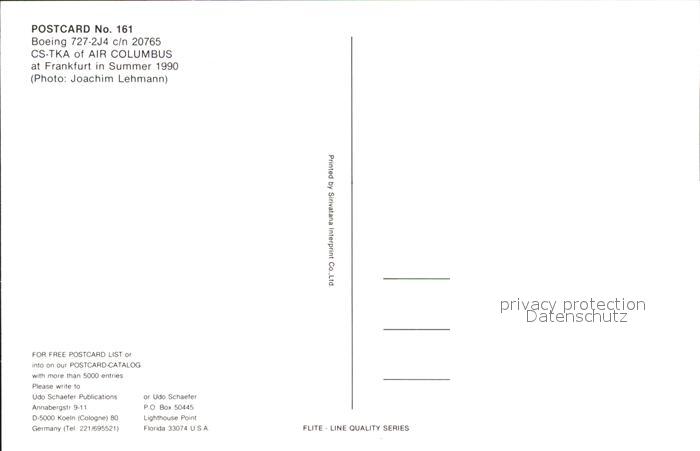 Flugzeuge Zivil Air Columbus Boeing 727-2J4 c/n 20765 CS-TKA postalisch nicht gelaufen