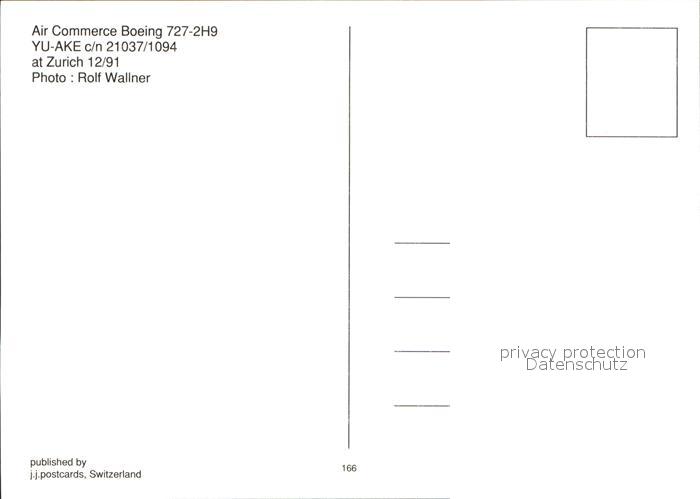 Flugzeuge Zivil Air Commerce Boeing 727-2H9 YU-AKE c/n 21037/1094 postalisch nicht gelaufen Erhaltung siehe scans
