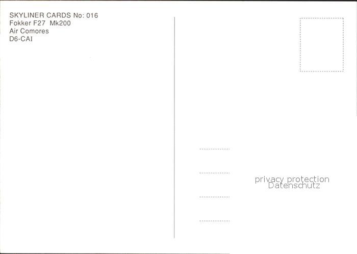 Flugzeuge Zivil Air Comores Fokker F27 Mk200 D6-CAI postalisch nicht gelaufen Erhaltung siehe scans