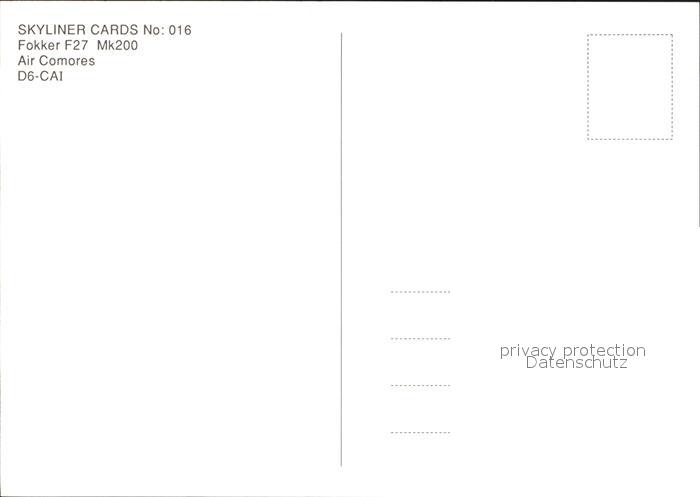 Flugzeuge Zivil Air Comores Fokker F27 Mk200 D6-CAI postalisch nicht gelaufen Erhaltung siehe scans