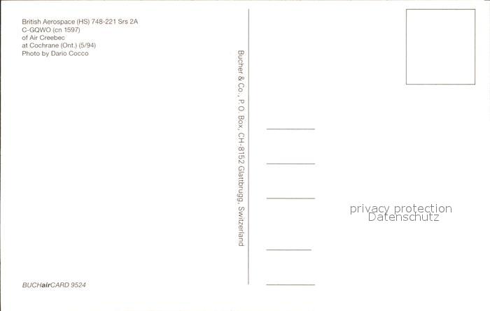 Flugzeuge Zivil Air Creebec British Aerospace HS 748-221 Srs 2A C-GQWO cn 1597 postalisch nicht gelaufen Erhaltung siehe scans