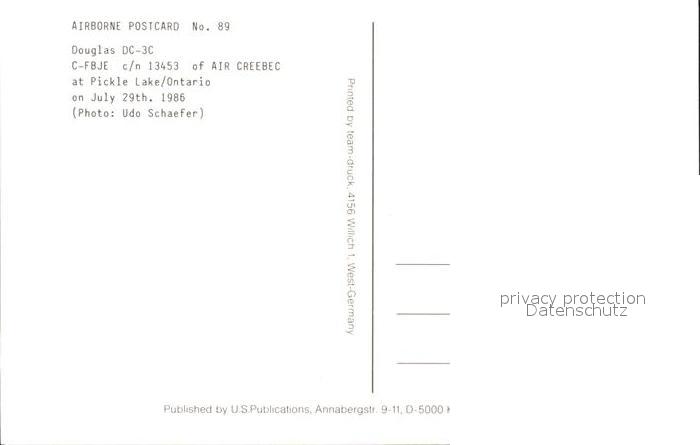 Flugzeuge Zivil Air Creebec Inc. Douglas DC-3C C-FBJE c/n 13453 postalisch nicht gelaufen Erhaltung siehe scans