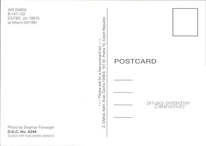 Flugzeuge Zivil Air Dabia B-747-122 C5-FBS c/n 19875 postalisch nicht gelaufen Erhaltung siehe scans