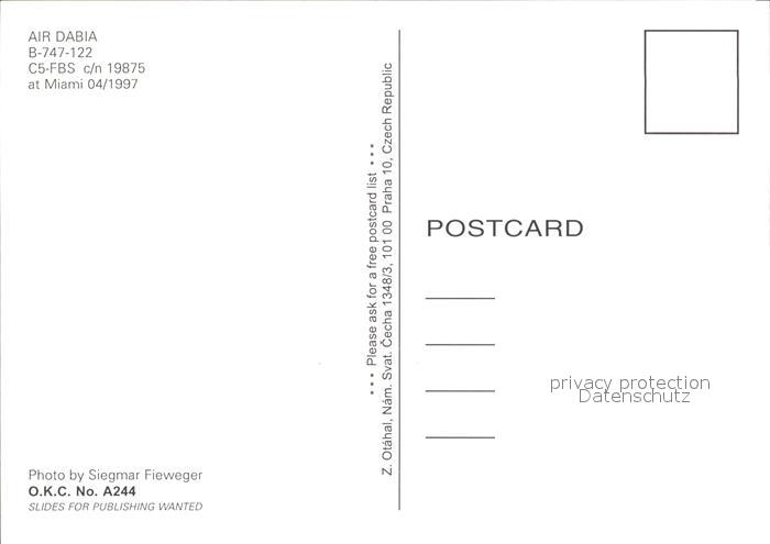 Flugzeuge Zivil Air Dabia B-747-122 C5-FBS postalisch nicht gelaufen Erhaltung siehe scans