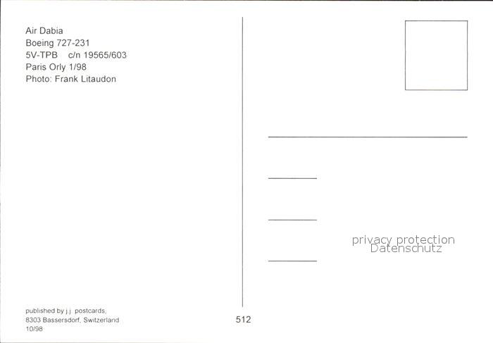 Flugzeuge Zivil Air Dabia Boeing 727-231 5V-TPB c/n 19565/603 postalisch nicht gelaufen Erhaltung siehe scans