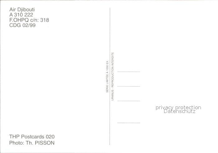 Flugzeuge Zivil Air Djibouti A 310-222 F.OHPQ c/n 318 postalisch nicht gelaufen Erhaltung siehe scans