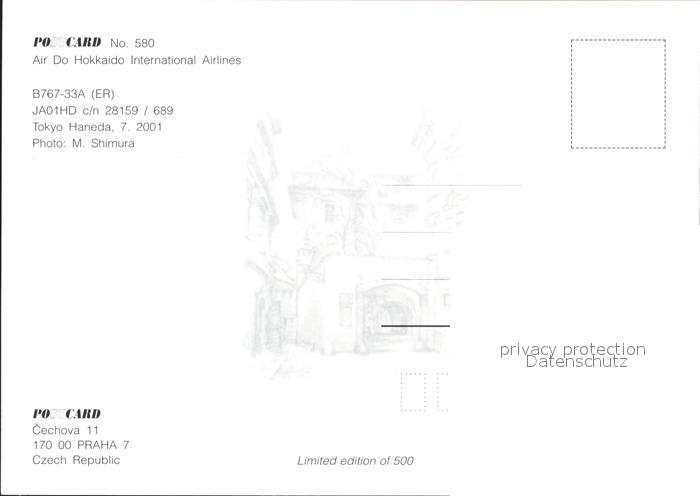 Flugzeuge Zivil Air Do Hokkaido International Airlines B767-33A JA01HD postalisch nicht gelaufen Erhaltung siehe scans