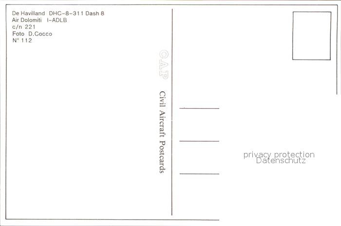 Flugzeuge Zivil Air Dolomiti DeHavilland DHC-8-311 Dash 8 I-ADLB c/n 221 postalisch nicht gelaufen Erhaltung siehe scans