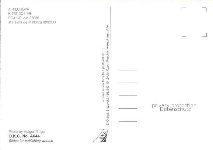 Flugzeuge Zivil Air Europa B-767-3Q8 ER EC-HKS c/n 27686 postalisch nicht gelaufen Erhaltung siehe scans