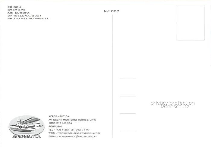 Flugzeuge Zivil Air Europa B737-375 EC-GEU postalisch nicht gelaufen Erhaltung siehe scans