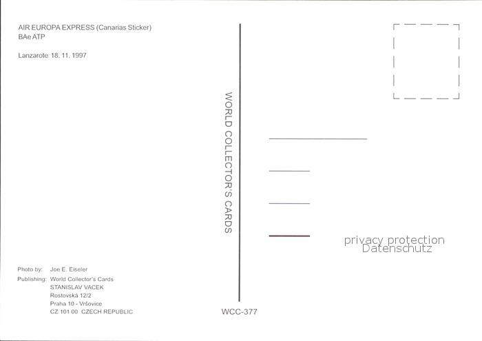 Flugzeuge Zivil Air Europa Express BAeATP postalisch nicht gelaufen Erhaltung siehe scans