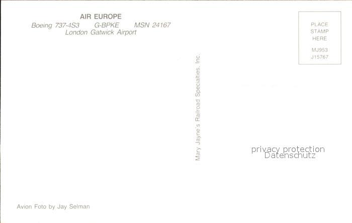 Flugzeuge Zivil Air Europe Boeing 737-4S3 G-BPKE MSN 24167 postalisch nicht gelaufen Erhaltung siehe scans