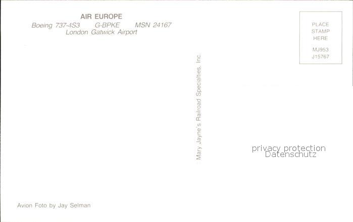 Flugzeuge Zivil Air Europe Boeing 737-4S3 G-BPKE MSN 24167 postalisch nicht gelaufen Erhaltung siehe scans
