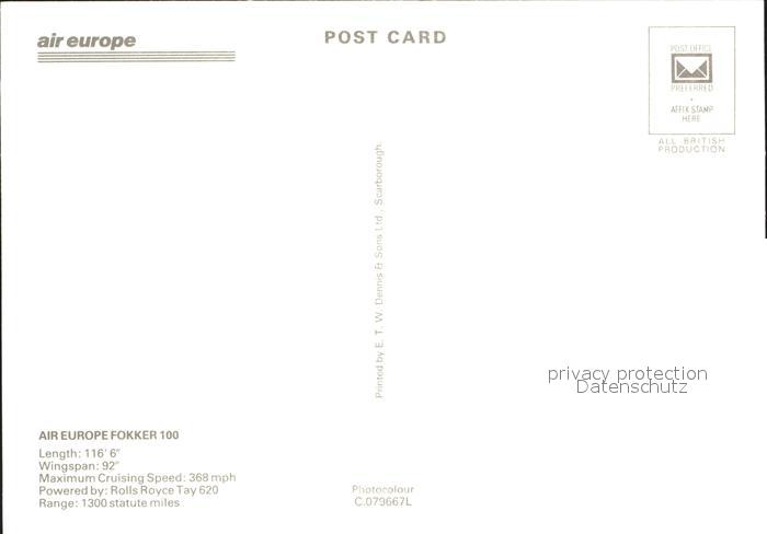 Flugzeuge Zivil Air Europe Fokker 100 postalisch nicht gelaufen Erhaltung siehe scans