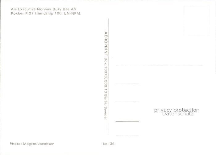 Flugzeuge Zivil Air Executive Norway Busy Bee AS Fokker F27 Friendship 100 postalisch nicht gelaufen Erhaltung siehe scans