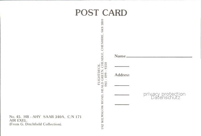 Flugzeuge Zivil Air Exel Saab 340A HB-AHY C/N 171 postalisch nicht gelaufen Erhaltung siehe scans