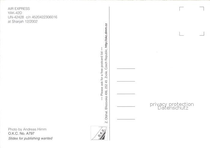 Flugzeuge Zivil Air Express YAK-42D UN-42428 c/n 4520422306016 postalisch nicht gelaufen Erhaltung siehe scans