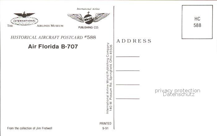 Flugzeuge Zivil Air Florida B-707 postalisch nicht gelaufen Erhaltung siehe scans